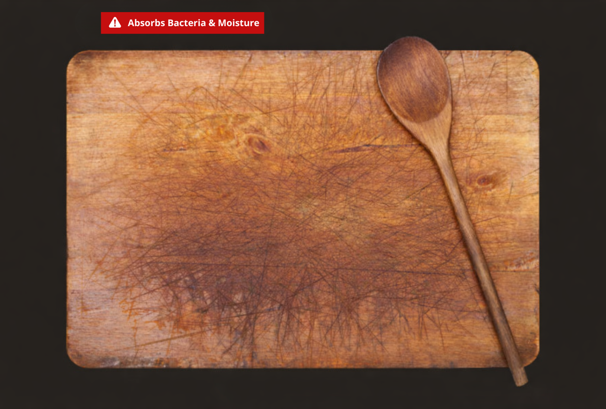 La madera absorbe los jugos de la carne cruda en lo más profundo. Ningún jabón logra eliminarlos por completo. Cada vez que vuelves a cortar, estás pasando por bacterias que ya quedaron atrapadas ahí. Estás preparando tu comida sobre una esponja llena de gérmenes